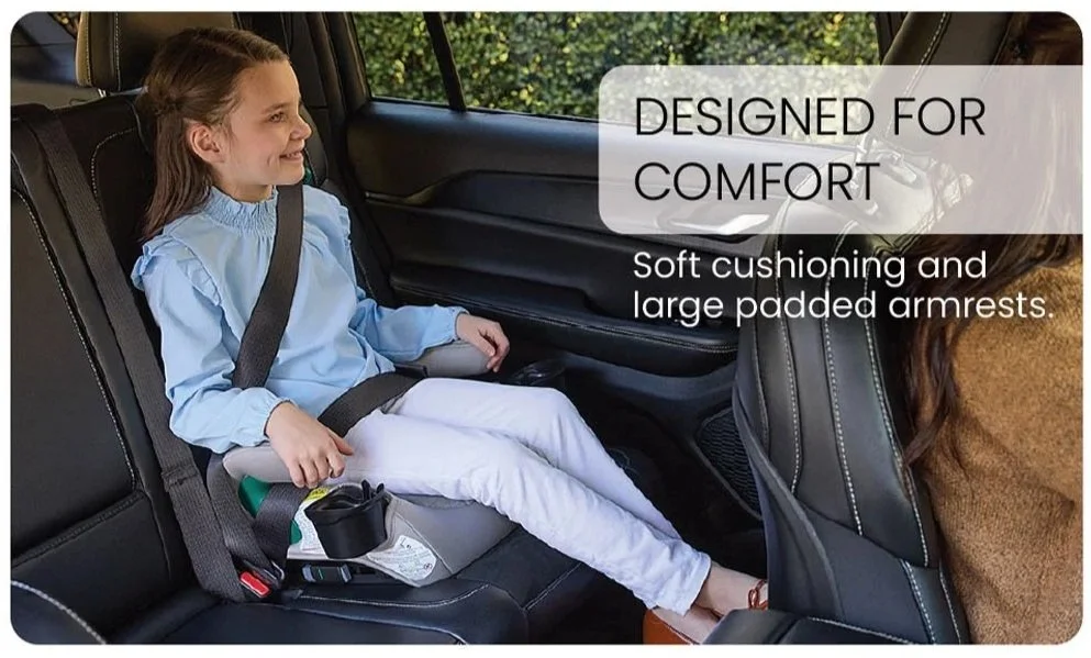 Designed for children from 18.1-54.4 kg / 40-120 lbs and 116.8-160 cm / 46”-63", the UpNGo Click backless booster seat combines the portability and convenience that parents look for with kid-approved comfort and style. The rigid LUAS connectors click in with ease and release in seconds, making it easy to move the seat between vehicles. UpNGo Click is innovatively designed with PosturePlus™ to help encourage proper posture and seat belt positioning. The slim 43.4 cm / 17.1” SpaceSaver™ design means there’s more room for siblings or carpoolers, and the soft cushioning and padded armrests give your child that extra boost of comfort. Whether they’re heading out for a shopping trip with grandma or hopping in with a friend on their way to a sleepover, they’ll feel confident navigating big-kid trips with this lightweight and easy-to-carry booster.